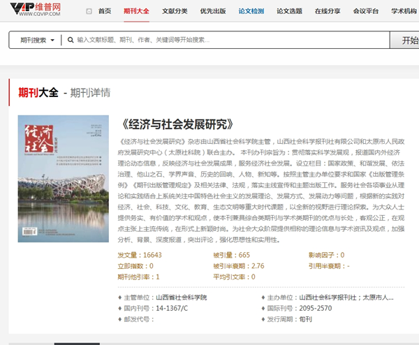2、一本正規的期刊是必須在(知名數據庫)查詢的,而且經濟與社會發展研究就是在(維普網)可以查詢的。作者發表的文章都是在這里檢索的。所以大家如果評職發表論文可以放心安排。