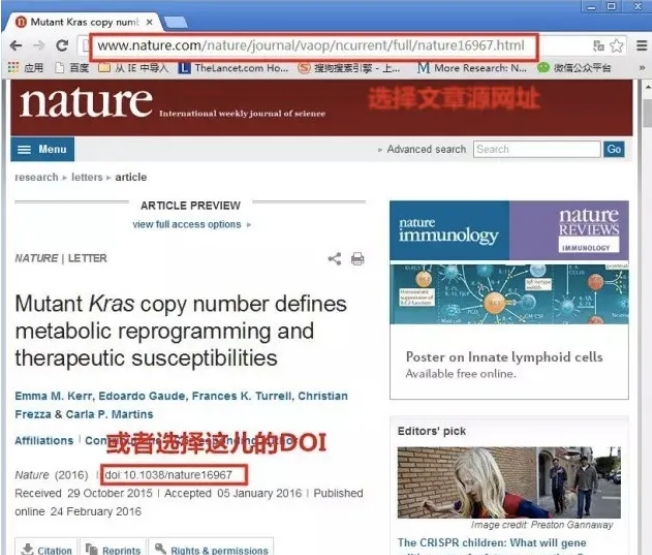 然后就打算試試UCL(網址)和DOI(編號)。進入Nature官網,選了這個月24號出的一篇文,復制其UCL和DOI。