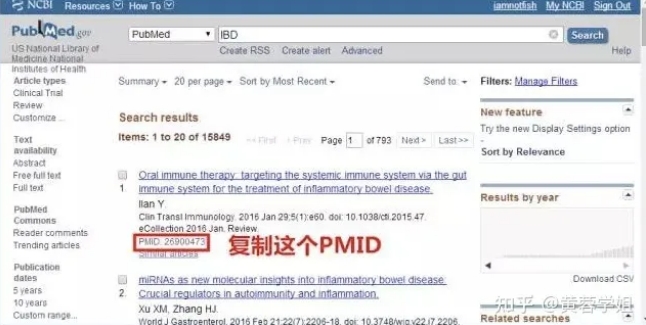 到這兒,已經不足以表明我對Sci-Hub智囊團的敬仰了!最后還想試試PMID,打開PubMed,關鍵詞搜索IBD,然后選擇一篇文章(是無法免費獲取的)復制其PubMedID(26900473)。
